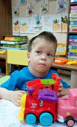 Характер: Матвей ласковый, добрый мальчик, идет на контакт со взрослыми, любит, когда его обнимают. Ребенок с увлечением играет с машинками и мелкими игрушками. Матвею нравится смотреть мультик "Маша и медведь", с желанием играет в настольные игры. Мальчик знает основные цвета, геометрические фигуры, составляет картинку из двух частей.