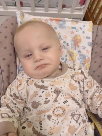 Характер: Михаил пытается хватать игрушку, висящую на кроватке, непродолжительное время удерживает погремушку, ощупывает некоторые предметы, проявляет интерес к тактильному общению, хватает за пальцы взрослых. Ребенок не поднимает голову, переворачивается со спины на живот. Зрительное и слуховое восприятие не сформировано. В течение дня настроение у Миши устойчивое, он положительно реагирует на ласковое прикосновение взрослого.