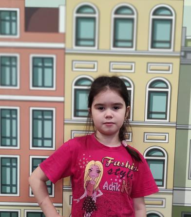 Ксюша по характеру скромная, доброжелательная, общительная девочка. Любит рисовать, лепить из пластелина.
